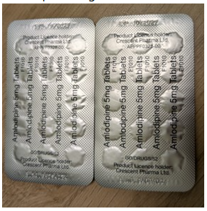 Amlodipine 5mg Tablets – Batch GA094034 Incorrect blister strip